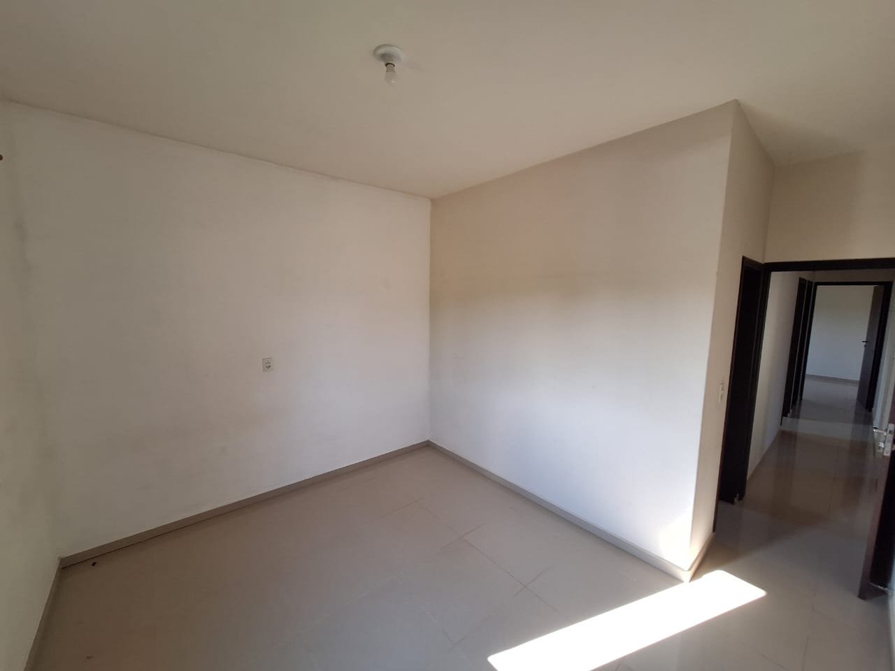 Casa de Laje com aberturas em angelim e piso porcelanato.